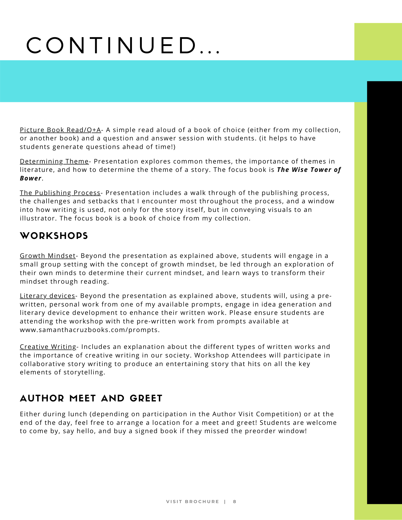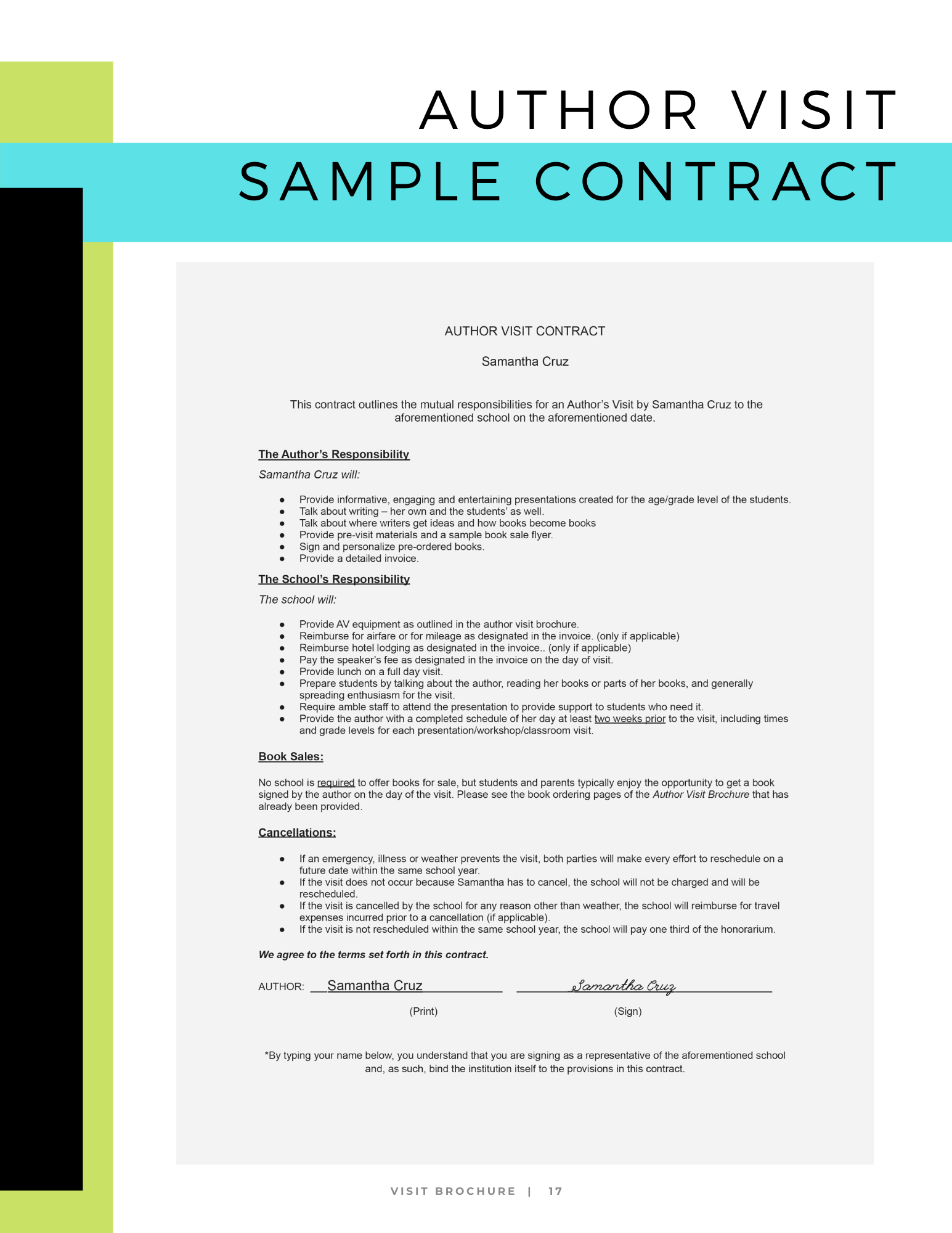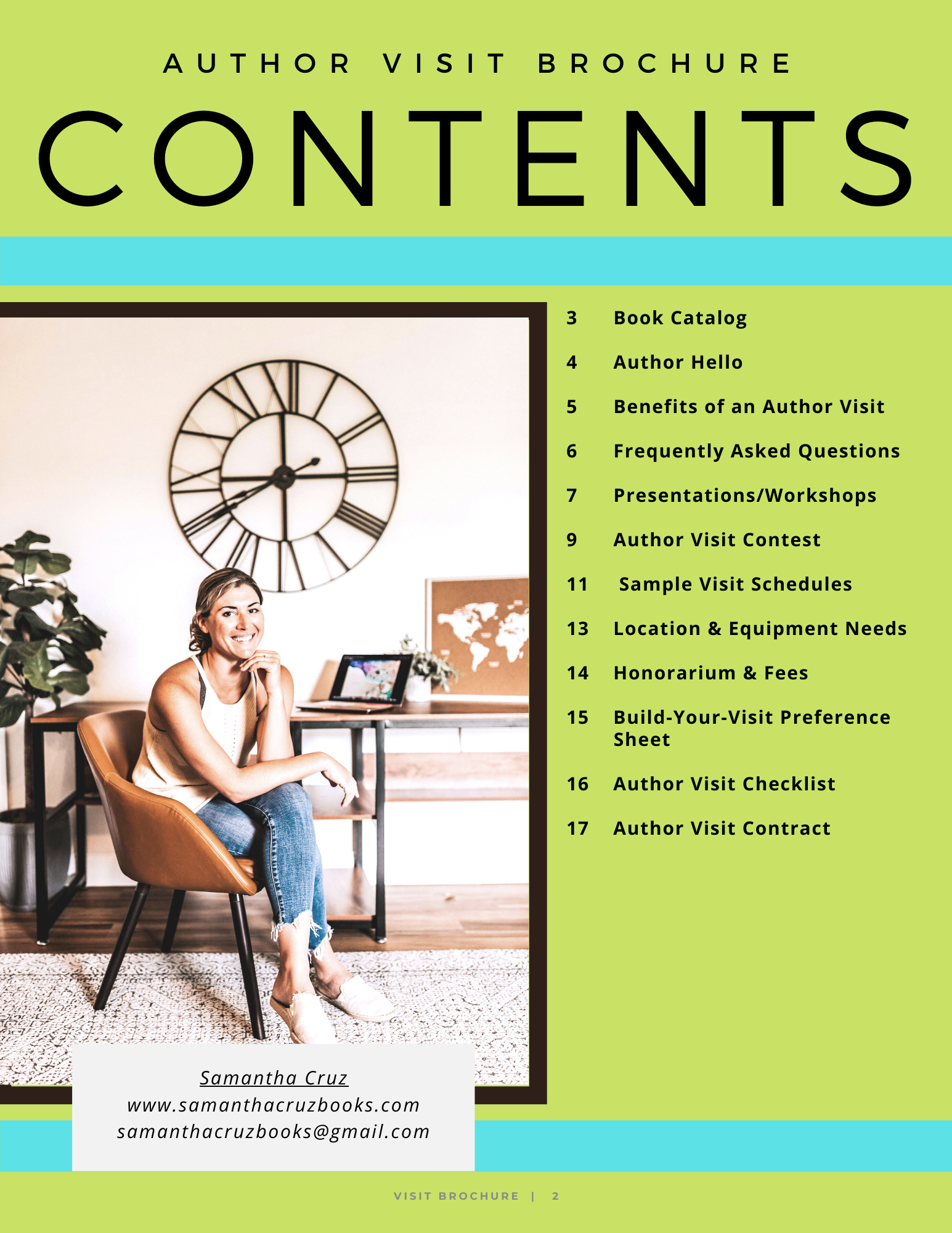Scan through the booklet below to see if a visit from Samantha Cruz is right for your school!