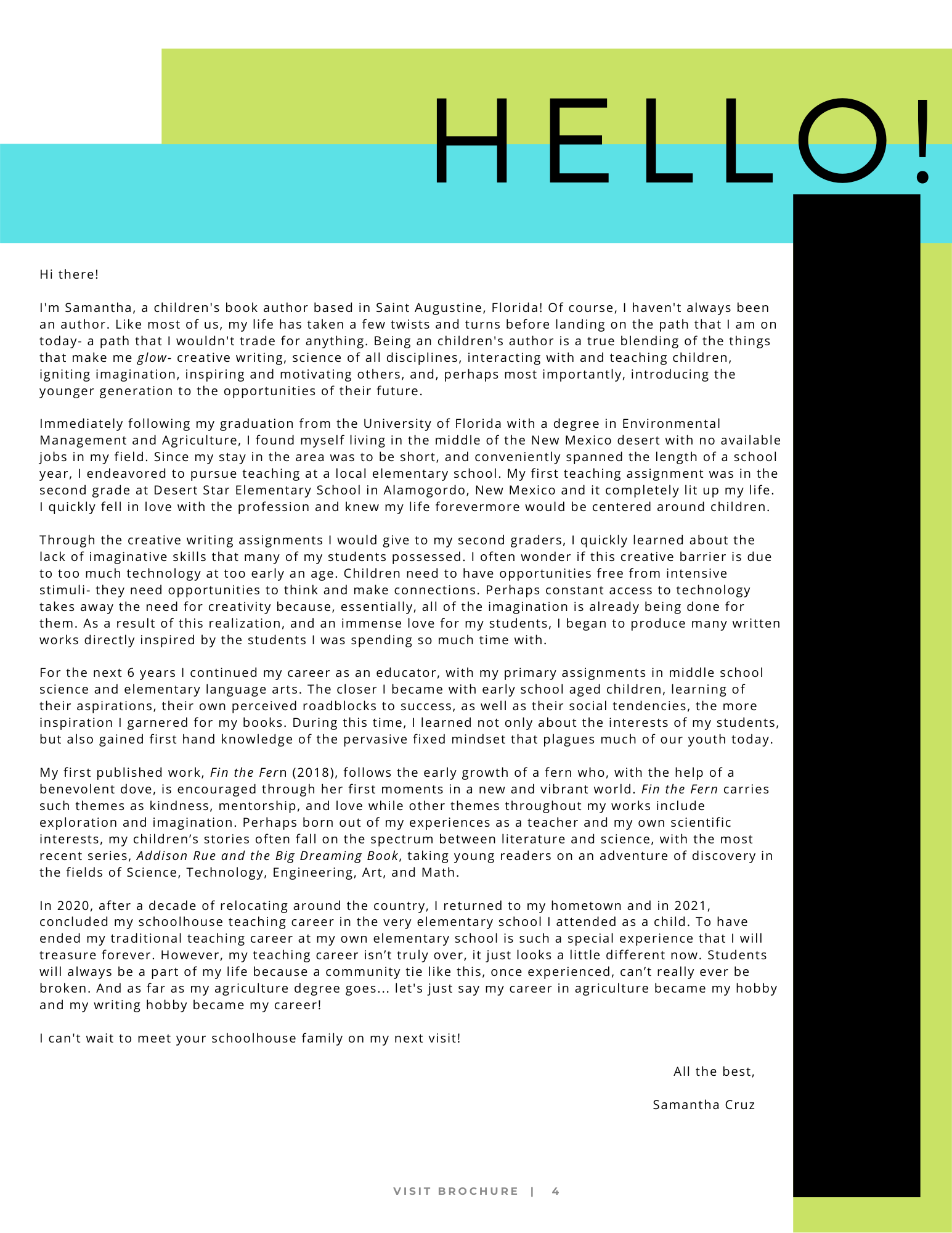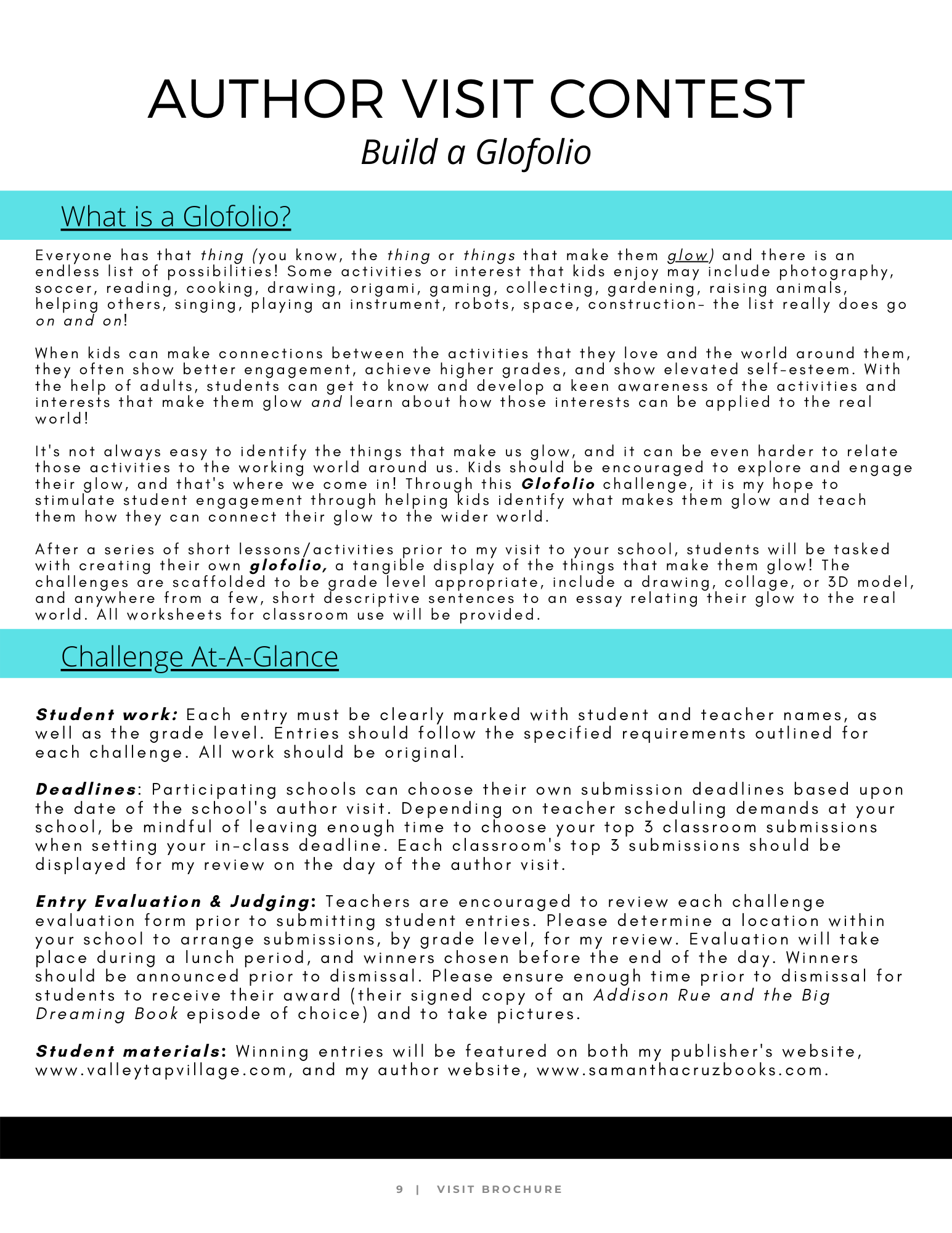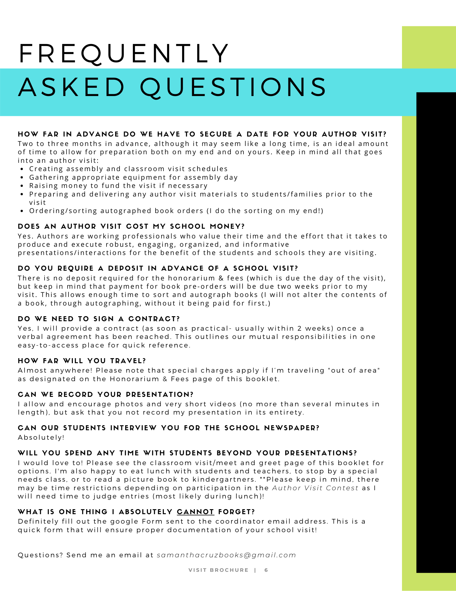 Scan through the booklet below to see if a visit from Samantha Cruz is right for your school!