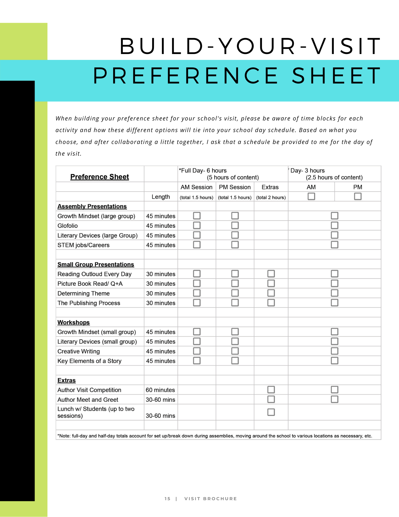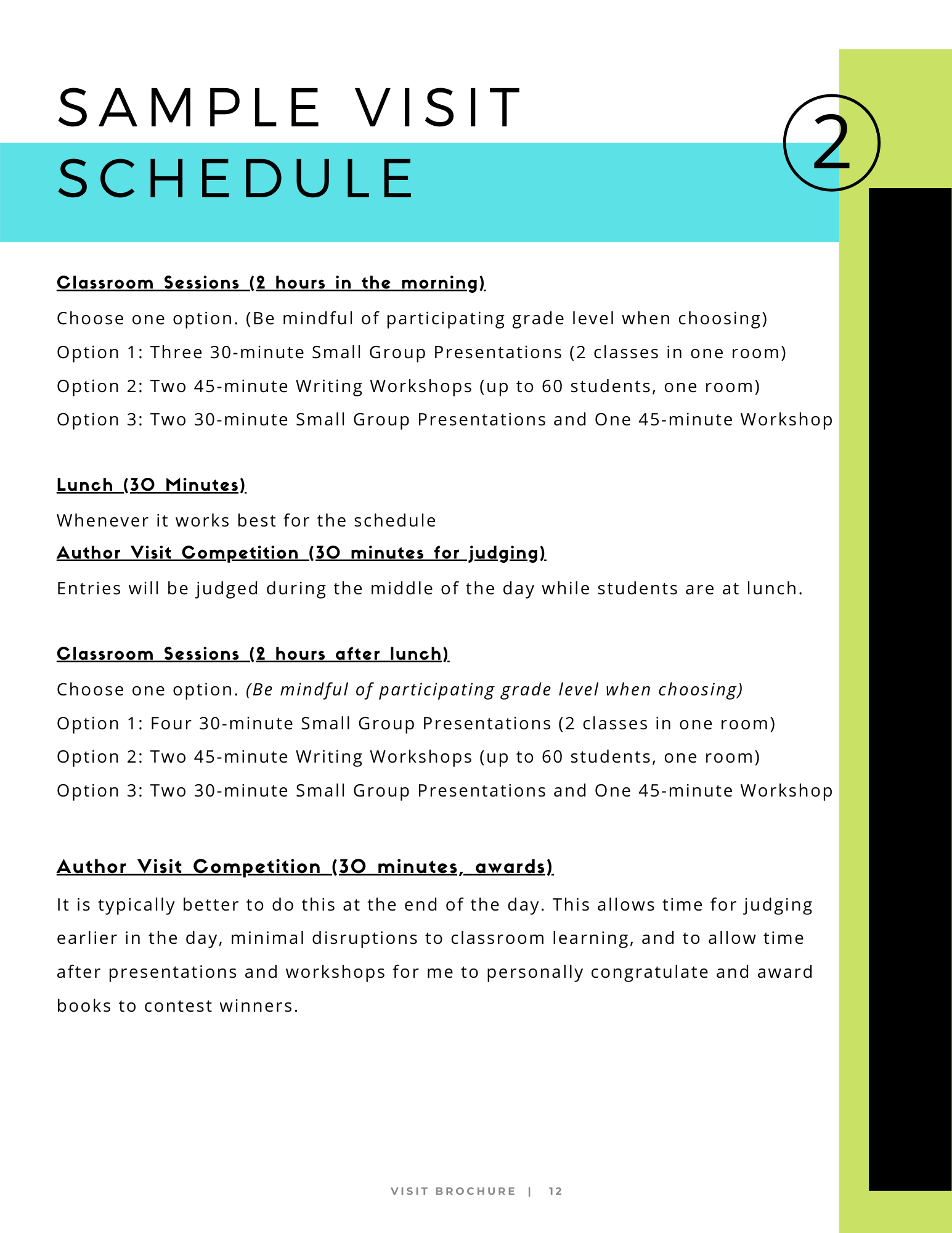 Submit Contract Form 2 weeks prior to visit to receive Author Visit Contract and ensure organized coordination